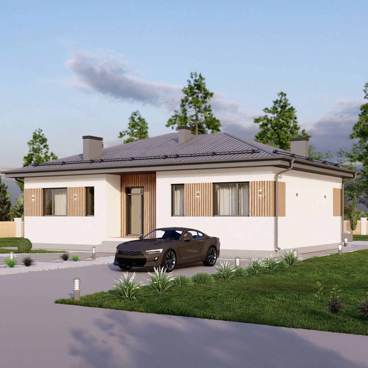 Крутой проект изысканного дома 127 м2, с собственной террасой и стильным фасадным решением Размер дома на участке: 11,4м*14,5м Планировка: ▪️кухня - гостиная ▪️3 спальные комнаты ▪️просторный холл ▪️2 санузла ▪️котельная ▪️кладовая ▪️терраса Вариант фасада вы можете выбрать сами, также как и внести правки в проект дома😍🔥 Узнать стоимость строительства, пишите в комментариях: 127 #проект