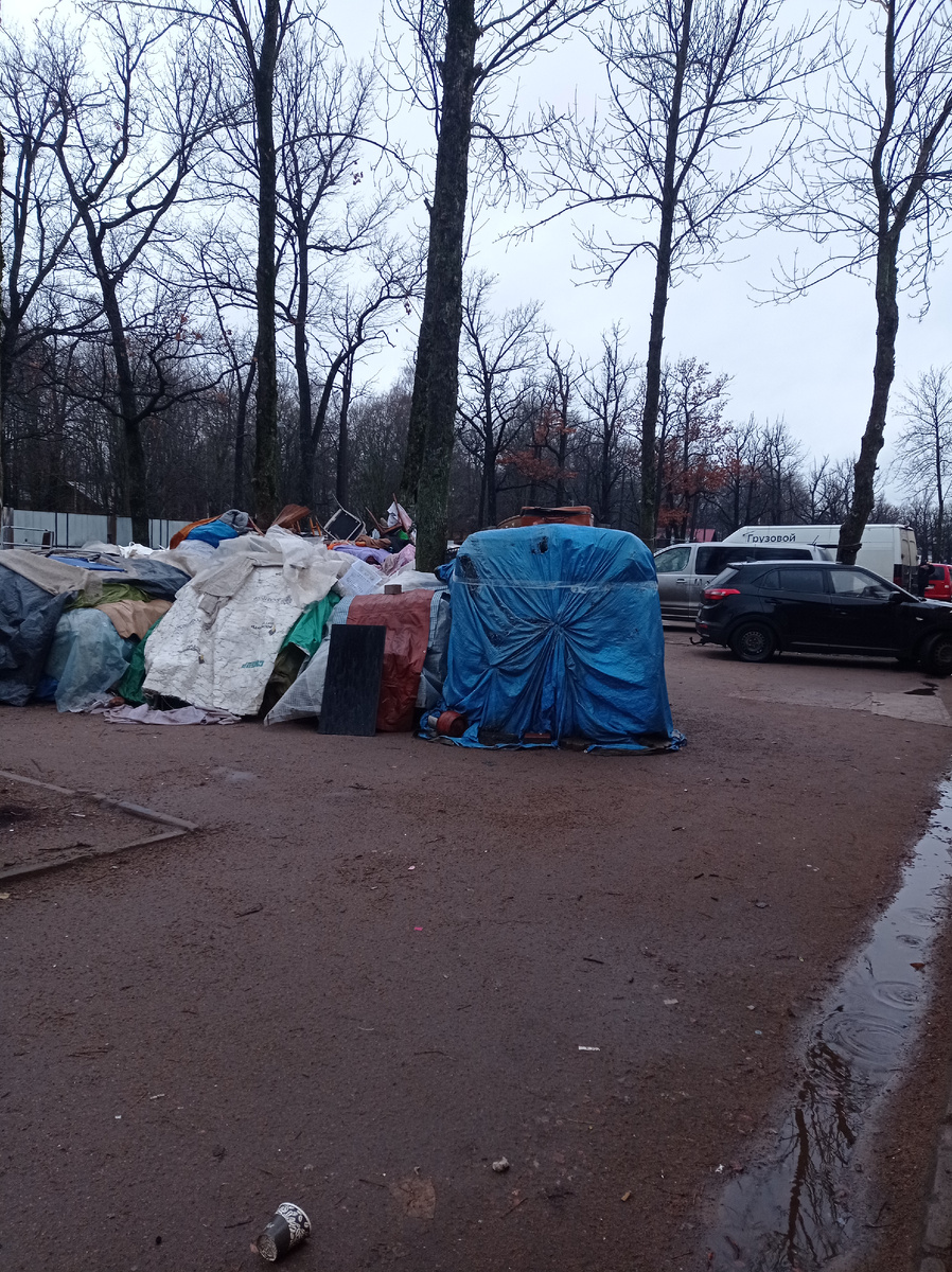 10 утра. Никаких товарных рядов, все собрано в огромные кучи и прикрыто полиэтиленом от дождя.
