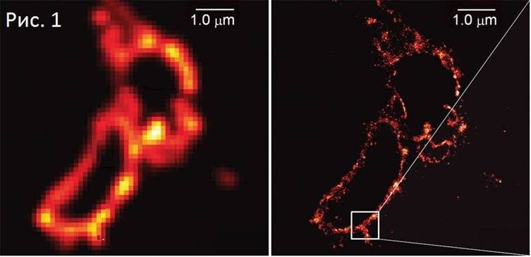 Первую часть можно почитать по ссылке: https://dzen.ru/a/aUV3ZWsLy3IHpCsD Как вы уже смогли убедиться по предыдущей части, видимый свет хорошо подходит для наблюдения объектов, видных невооруженным глазом, а вот будь мы субмикронного размера всё вокруг окружали бы дифракционные кольца… Кстати, проявление дифракции обнаруживается не только появлением колец. Использование обычного оптического микроскопа для наблюдения малых частиц может обернуться кажущимся укрупнением и даже слипанием частиц. На рис. 1 вы можете видеть две фотографии одной и той же области – с обычного оптического микроскопа и с использованием, так называемой, сверхразрешающей микроскопии. На самом деле то, о чем я вам рассказываю, было доказано на практике еще в 1873 году Эрнстом Аббе. Он установил, что размер объекта для наблюдения может быть максимум в два раза меньше длины волны света. Учитывая, что наш глаз может различить до 400 нм, то около 200 нм – это, так называемый «дифракционный предел» (см. рис. 2). На прак