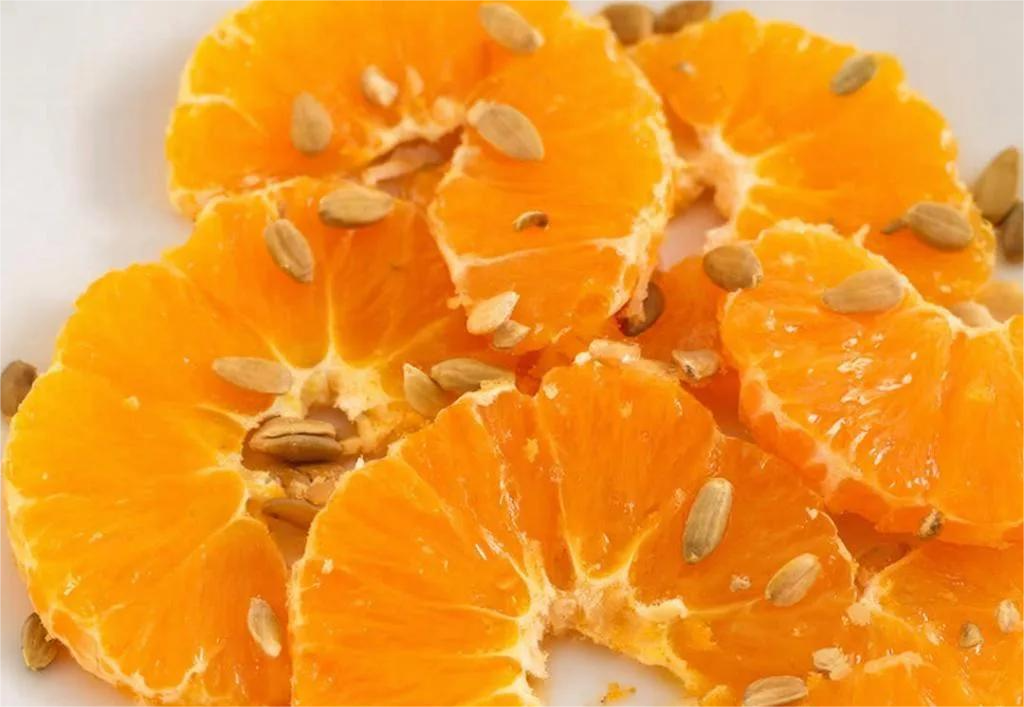 Карпаччо из мандарина и семечек подсолнуха