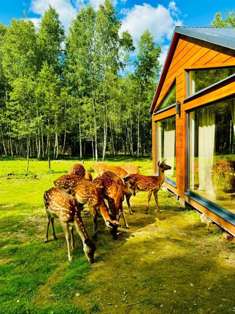 Вы сможете с комфортом наблюдать за оленями в их естественной среде обитания из огромных панорамных окон.