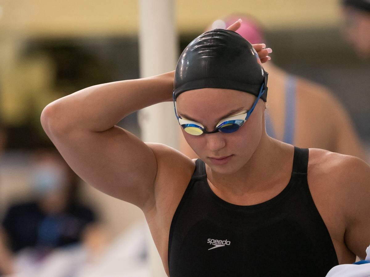 Ника Годун лидирует на дистанции 50 метров брасс среди женщин с результатом 30.28