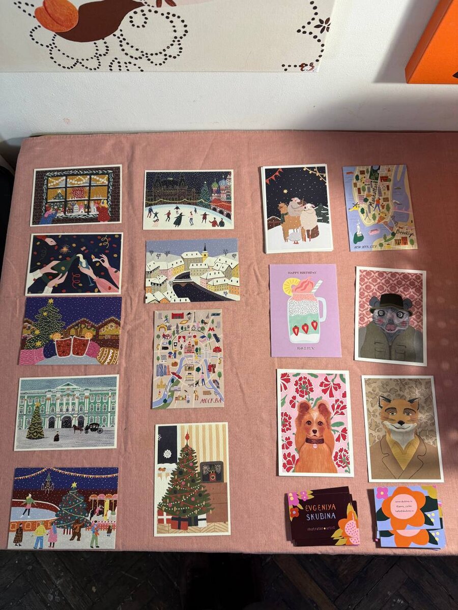 Поглядите, какие открытки Женя Скубина представила на маркете в мастерских художников на Покровке