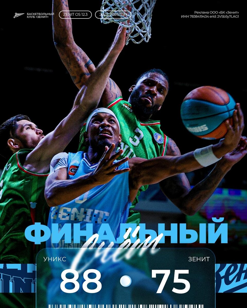 БК «Зенит» в матче Единой лиги ВТБ проиграл казанскому клубу УНИКС