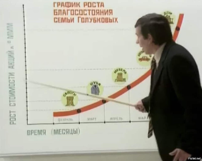 : Купил пакет голубых фишек в декабре 21 года на 400 тыс руб, не чего с ним не делал, на сегодняшний день минус 110 тыс. Это нормально? Можно надеется на рост в перспективе 10-20 лет или он стремится к нулю? Меня забавляет желание людей экстраполировать тренды на основе весьма неполных данных, то есть торопиться делать далеко идущие выводы. Эксплуатацией этого желания успешно занималась реклама МММ в 90-е годы. В ней Лёня Голубков (не халявщик, а партнёр) удачно, как он считал, купил "акции" и построил восходящий график, на котором точно определил, когда сначала купит жене сапоги и шубу, а потом мебель, автомобиль и дом. Что было дальше - мы все хорошо знаем. Если вы купили акции в 2021 году и опасаетесь, что они стремятся к нулю, то вы копируете Леню Голубкова, только наоборот. Экстраполируете или, иначе говоря, мысленно протягиваете в будущее нисходящую тенденцию последних 4 лет. Корректно ли так делать? Конечно же, нет. Из того факта, что акции в минусе, абсолютно не следует, чт