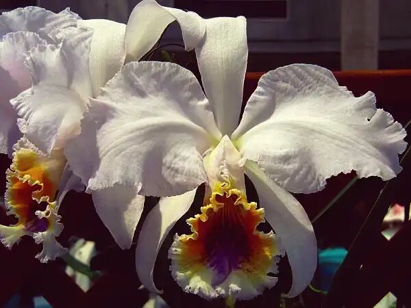 Цветки каттлеи могут достигать 20–25 см в диаметре! Они часто сочетают контрастные оттенки — глубокий пурпурный губой на фоне белоснежных или золотистых лепестков. А аромат… Он настолько насыщен, что может наполнить запахом всю комнату — особенно вечером.