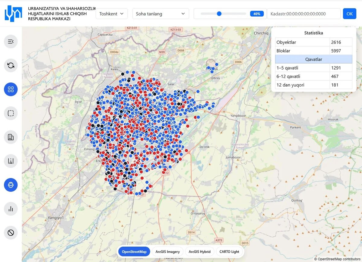 По инициативе Министерства строительства и жилищно-коммунального хозяйства для граждан введено в эксплуатацию еще одно удобное цифровое решение. Теперь подробную информацию о строительных работах, проводимых по всей стране, можно получить с помощью специальной интерактивной карты. Для использования данного сервиса достаточно зайти на платформу DSHQ.shaffofqurilish.uz. На сайте выбранный пользователем регион отображается в виде зон, выделенных разными цветами на интерактивной карте. Это позволяет мгновенно понять текущее состояние строительства. Все объекты на карте разделены на три основные категории. Красным цветом отмечены объекты, строительство которых было приостановлено. Синим цветом обозначены проекты, находящиеся в процессе строительства. Черный цвет указывает на полностью замороженные или отмененные строительные работы. Дополнительно на карте можно увидеть уровень сейсмической активности региона, где расположен тот или иной объект. Эта информация особенно важна для граждан, пла