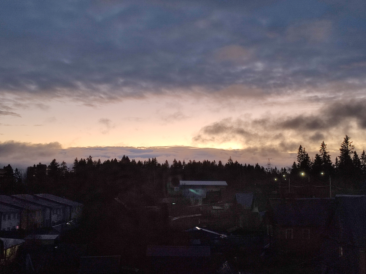 Солнца, правда, не было, но восход я поймала. Потом солнце поднялось в тучи и наступил обычный серый день.