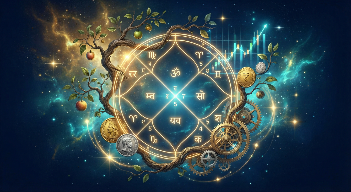 Бывает, человек всю жизнь считал себя Тельцом. А потом приходит к ведическому астрологу — и вдруг он Овен. Подвох? Ошибка? Нет. Просто разные системы отсчёта. Западная астрология отталкивается от сезонов — где Солнце в момент весеннего равноденствия. Удобно для календаря. Джйотиш смотрит на реальное небо. Где физически находились планеты относительно звёзд, когда вы родились. Это называется сидерический зодиак — от латинского «звёздный». И вот в чём фокус: точка весеннего равноденствия потихоньку «ползёт» — примерно на 1 градус за 72 года. За века накопился сдвиг в 23–24 градуса. Поэтому западный Телец может быть ведическим Овном. Зачем это Джйотишу? Здесь важен не сезон вашего рождения, а структура космоса в этот момент. Реальные звёзды. Плюс 27 накшатр (лунных стоянок) — они тоже привязаны к звёздному фону и дают тонкие нюансы. Карта рождения в Джйотиш — это не «какой вы по характеру». Это карта потенциалов и энергий, с которыми вы пришли. Если вы всегда читали себя по западной сис