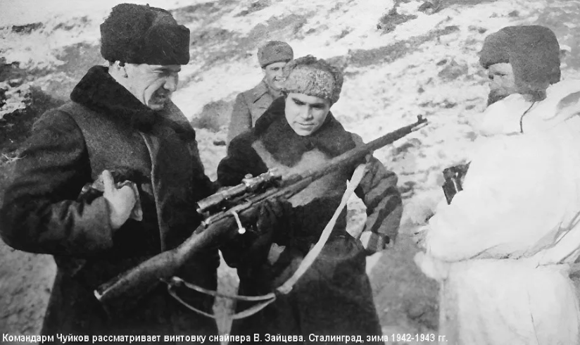 В боях за Сталинград наши солдаты не только храбро воевали, но и проявляли недюжинную смекалку. Самый известный пример — история про Василия Зайцева и немецкого снайпера-профи. Там, чтобы победить, нужна была не только меткость, но и хитрость. Короче, осенью 42-го Сталинград превратился в сплошные развалины. И там снайперы с обеих сторон вели свою войну. Немцы, чтобы переломить ход событий, прислали крутого снайпера из школы в Цоссене. Говорят, майора, а кто-то говорит, капитана. Ему приказали убрать наших снайперов, и первым в списке был Василий Зайцев, который к тому времени уже стал легендой. Для немцев было важно убрать Зайцева не только в плане боя, но и для поднятия духа. А для нас, наоборот, было делом принципа, чтобы Зайцев остался жив и продолжал воевать. Снайперские бои — это не как в кино. Это долго, нудно, надо уметь маскироваться и всё просчитывать. Снайперы изучают друг друга как под микроскопом, выжидают ошибку, ловят каждый шорох, блик или тень. Обманки тоже шли в ход.