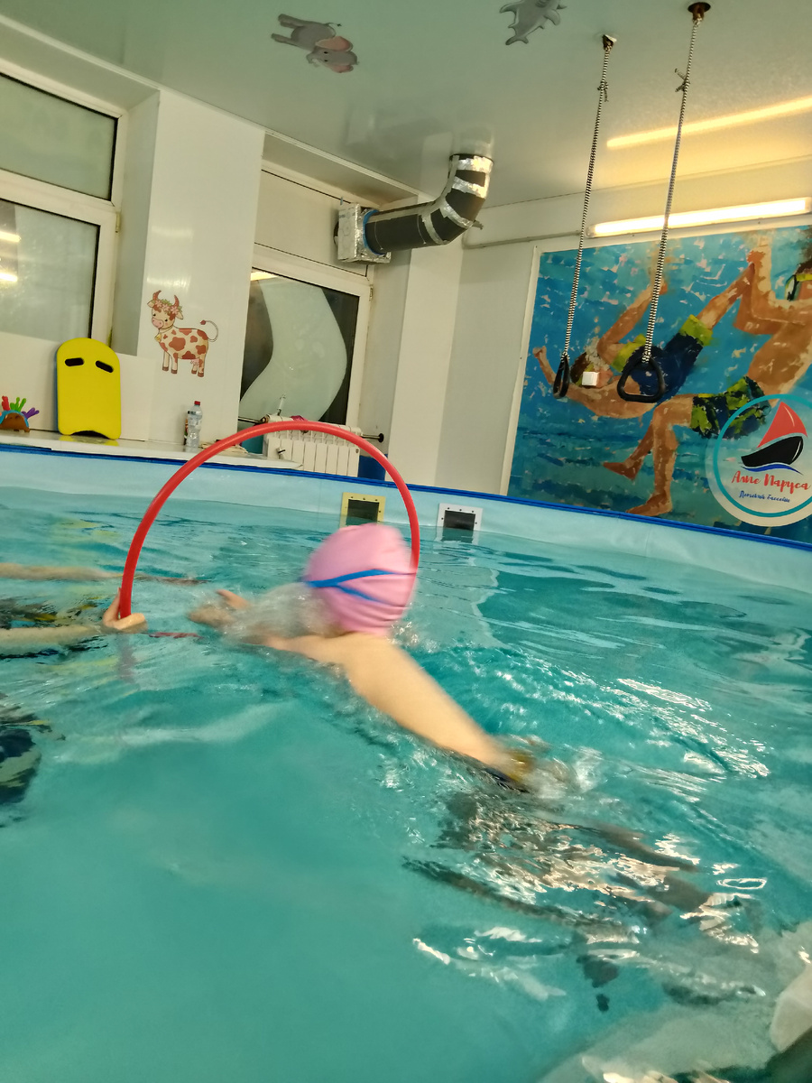 И вот они круг проплыли, другой, тренер мальчика посадила на лесенку, сама отошла за реквизитом для следующего упражнения, а ребенок всё не останавливается, рассказывает ей о всяких рыбах, крабах, медузах. Да так подробно рассказывает, мне лично было интересно его слушать.