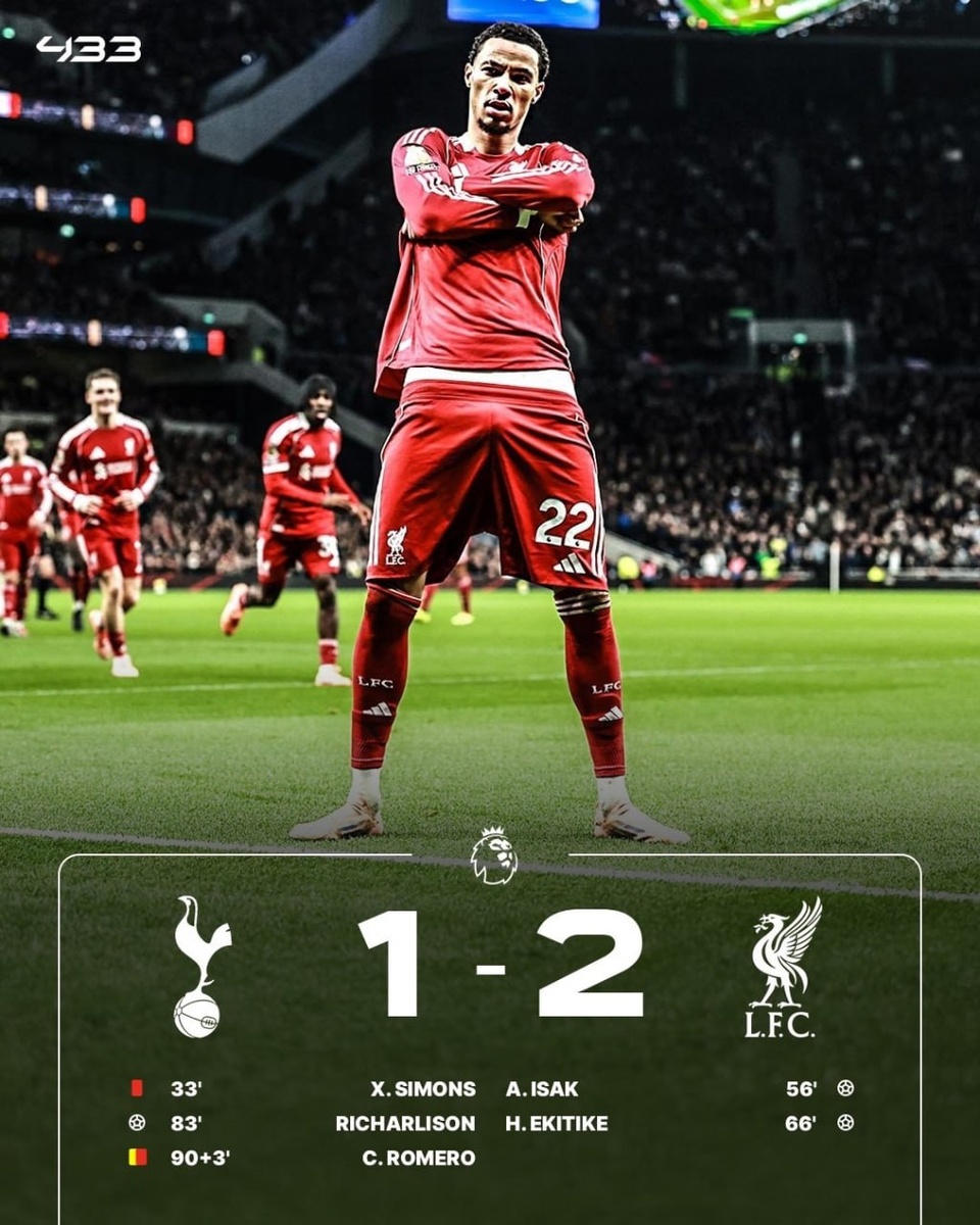 " ⚽️ Голы: Александер Исак 56, Уго Экитике 66, Ришарлисон 83 p.s - Инициатива переходила из рук в руки но обе команды не преуспевали на мяче : Ливерпуль атаковал в 3-1-3-3/3-2-5 с частыми ротациями, тройку ЦЗ могли формировать Джонс/Гравенберг а опускаться в опорку Собослаи/Мак Аллистер, толку от этого практически не было (хотя Керкез в такой структуре часто занимал ширину а Вирц смещался в центр с фланга, что удобно этим игрокам) Тоттенхэм чёткой структуры на мяче не показывал, 10ка Симонс часто опускался в глубину для продвижения из глубины а ЦПЗ Грэй мог оказываться на ЦН из-за мобильности Муани (но у Шпор всё тоже было стерильно, они традиционно сваливались в навесы) - В большинстве гости всё же нашли свои моменты, поймали хозяев на ошибке при коротком розыгрыше + оформили классический гол с навеса, в общем атакующие замены Слота сработали на ура. Хотя, стартовый план Арне опять не сработал, качество игры было вновь низким + умудрись отдать инициативу такому слабому ТОТ с удале