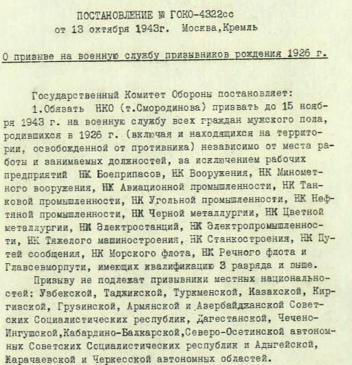 Обратите внимание, что это было в 1943 году, когда этим мальчишкам было по 17 лет. А согласно закона СОЮЗА СОВЕТСКИХ СОЦИАЛИСТИЧЕСКИХ РЕСПУБЛИК О ВСЕОБЩЕЙ ВОИНСКОЙ ОБЯЗАННОСТИ