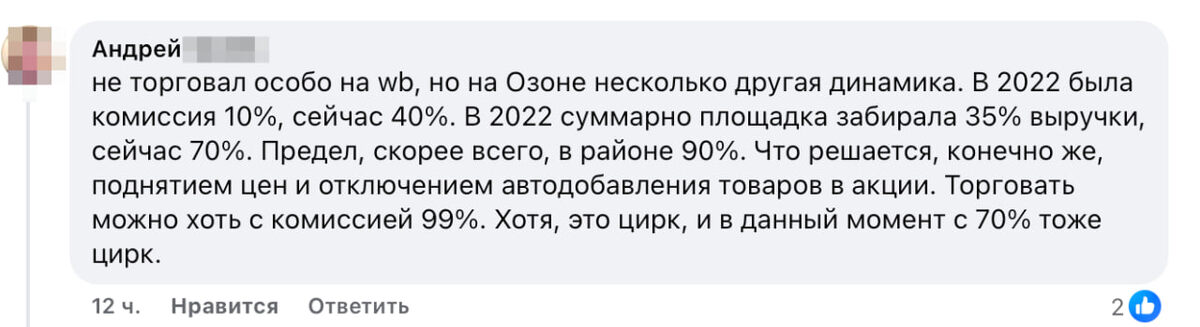 Я вот тут подумал, что МП смогу сдавать Интернет- магазинам свою логистическую структуру в аренду и это, к слову, будет ренесансом личных Инет- магазинов. Если комиссия была 35% в 2022 году, а сейчас 70% - мне одному кажется, что это очень много? :) Русский ИТ бизнес