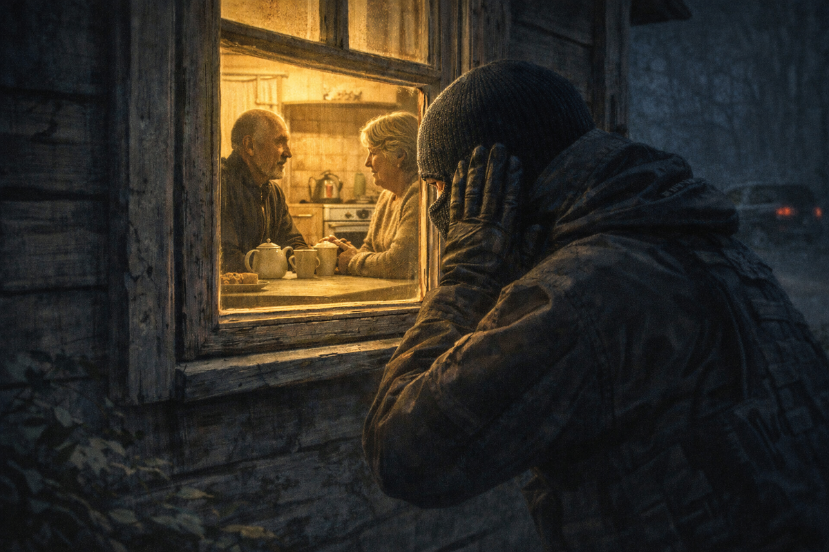 Морозный воздух, проникавший сквозь ткань балаклавы, обжигал легкие, но Сухой не обращал на это внимания. Всё его внимание было сосредоточено на голосах, проникавших сквозь стекло. Желтый, теплый свет из окна, казавшийся почти осязаемым, создавал на снегу перед домом небольшой, но предательский круг, в котором киллер не хотел оказаться. Он прикинул расстояние до окна, до двери, до ближайшего укрытия. Каждая секунда, проведенная здесь, увеличивала риск обнаружения, но уйти он не мог. Голос Бурана, обычно жесткий и властный, сейчас звучал с непривычной мягкостью, почти виной, а испуг женщины был слишком искренним, чтобы быть наигранным.