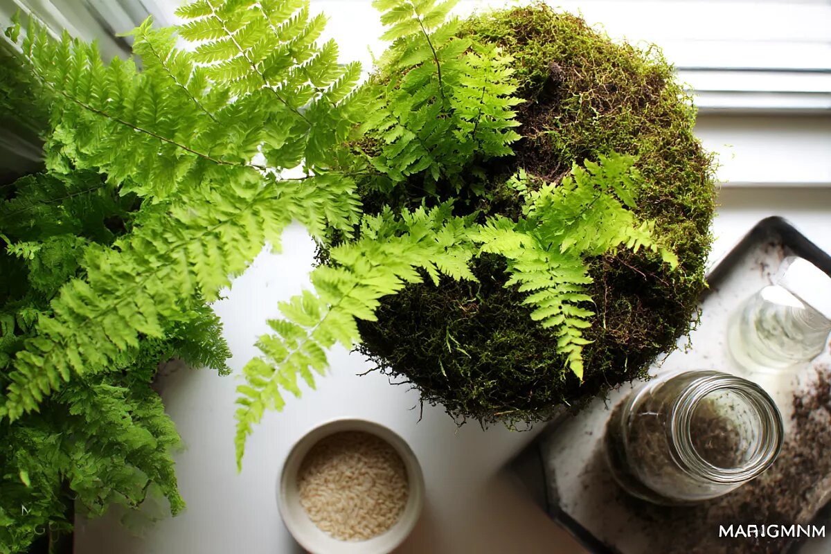Суть простая: корни не тревожим, убираем всё сухое, выравниваем влажность сверху и даём свет без прямых лучей. Мне было жалко смотреть на этот горшок. Сверху земля казалась каменно сухой, и сразу понятно, почему растение выглядит так устало. Но внутри кома внизу ещё оставалась влага, и это дало надежду, что его можно вытянуть. Папоротники не любят, когда им тревожат корни, поэтому я решила пока не лезть с пересадкой. Вместо этого аккуратно срезала все высохшие вайи. Их оказалось очень много. По виду это похоже на неровный полив. Верх пересыхал, а низ оставался мокрым. Из-за этого часть листьев просто не выдержала. Чтобы верх больше не высыхал пятнами, я замульчировала поверхность сфагнумом. Такой мох помогает держать субстрат равномерно влажным. Дальше всё очень спокойно: из пульверизатора я поддерживаю мох слегка влажным. Папоротникам нужна высокая влажность воздуха и умеренно влажный субстрат, без крайностей. Горшок я поставила на яркий рассеянный свет и в прохладу, около 18 °C. И ст