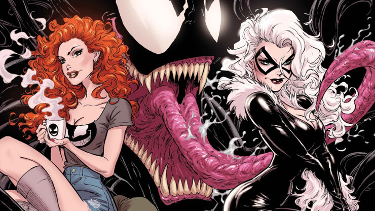 В последнем (пятом) выпуске серии Black Cat от сценаристки Дж. Уиллоу Уилсон (Ms. Marvel) и художника Глеба Мельникова (Robin) воровка-героиня Чёрная Кошка (Фелиция Харди) в очередной раз оказалась по ту сторону закона. Впрочем, где ей ещё быть? К счастью, за спиной у главной воровки комикс-вселенной Marvel Comics появилась неожиданная союзница — знакомая всем нам рыжеволосая красавица Мэри Джейн Уотсон. Связь между двумя главными женщинами в жизни Питера Паркера крепла годами. И в начале следующего года в седьмом номере эти отношения снова окажутся в центре внимания. Вот только есть нюанс. Кошка пока не в курсе, что Мэри сейчас — новый Веном. Так что дружеская встреча рискует превратиться в весьма нервный тройничок. Восхитится ли Фелиция тем, что ЭмДжей стала супергероиней-симбиотом? Или присутствие такого чёрного напарника уничтожит доверие? Художник Каре Эндрюс представил эту троицу на эффектном варианте обложки-диптиха для седьмого и восьмого выпусков. Уилсон рада поработать с эт