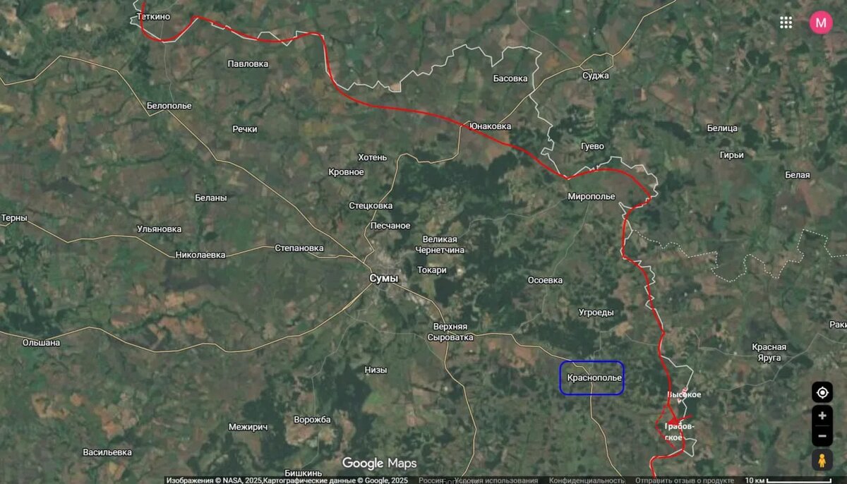 С Сумского направления продолжают поступать хорошие новости. Вслед за занятием нами приграничного н.п. ВЫСОКОЕ, подразделения группировки «Север» заняли и соседнее ГРАБОВСКОЕ. До войны довольно большое село, в котором проживало несколько сот человек (родина поэта Павла Грабовского). Насколько все серьезно с нашей стороны судить пока рано. Но я бы здесь что хотел отметить. До районного центра Сумской области — КРАСНОПОЛЬЯ отсюда осталось пройти всего 6 км. Причем, по лесам и балкам (что помогает наступающим и мешает обороняющимся). И это, однозначно будет иметь медийный эффект (то чего больше всего боится «просроченный». А значит, чтобы не дать нам этого сделать, противнику срочно придется перебрасывать на Сумской участок фронта резервы. А нам может быть этого только и нужно. А может и не только этого? В общем пусть гадают…