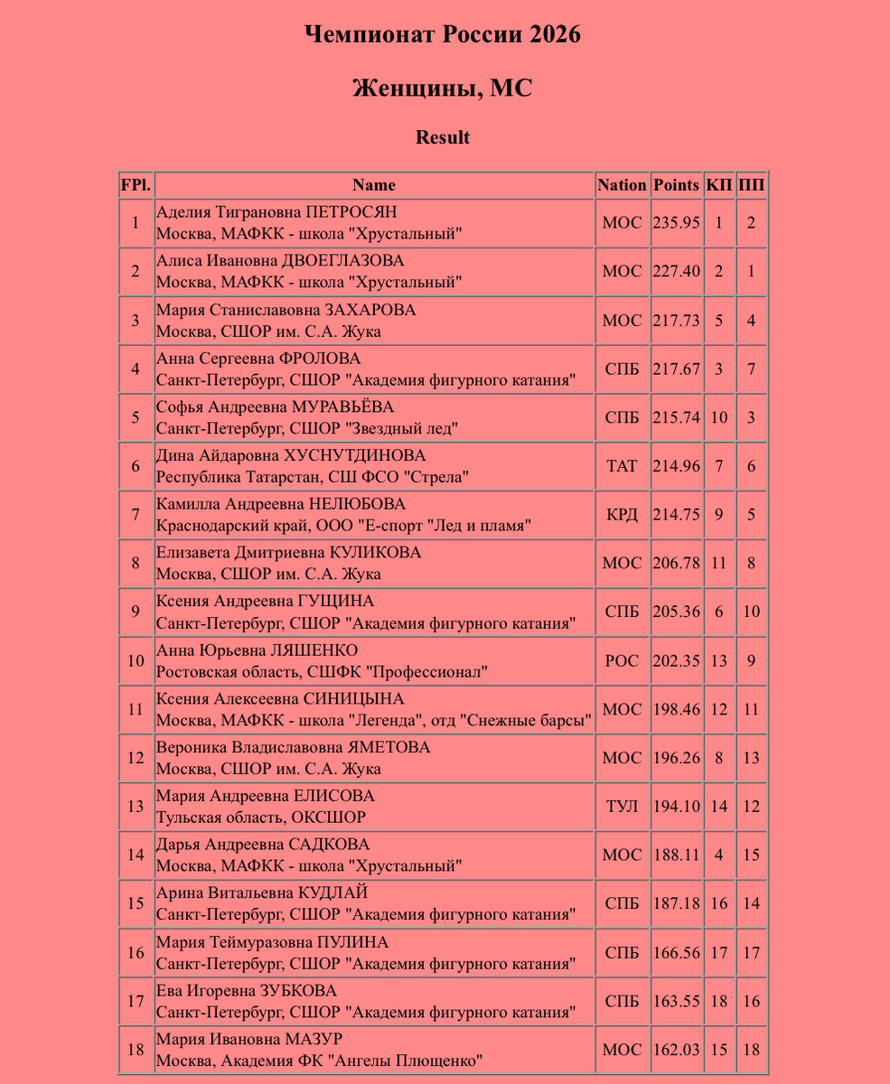 Давайте завершим статью на хорошей ноте. Команда Этери Георгиевны Тутберидзе 11-й раз подряд выигрывает золото чемпионата страны в женском одиночном катании!