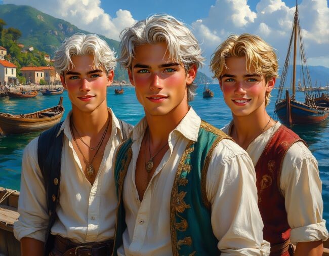 И купили они, как и было задумано, два парусно-рыболовных баркаса. Льняных сетей, крепких набрали доверху. И вот, словно два белоснежных лебедя, прильнули их баркасы к рыбацкой бухте, убаюканные тихим плеском волн.