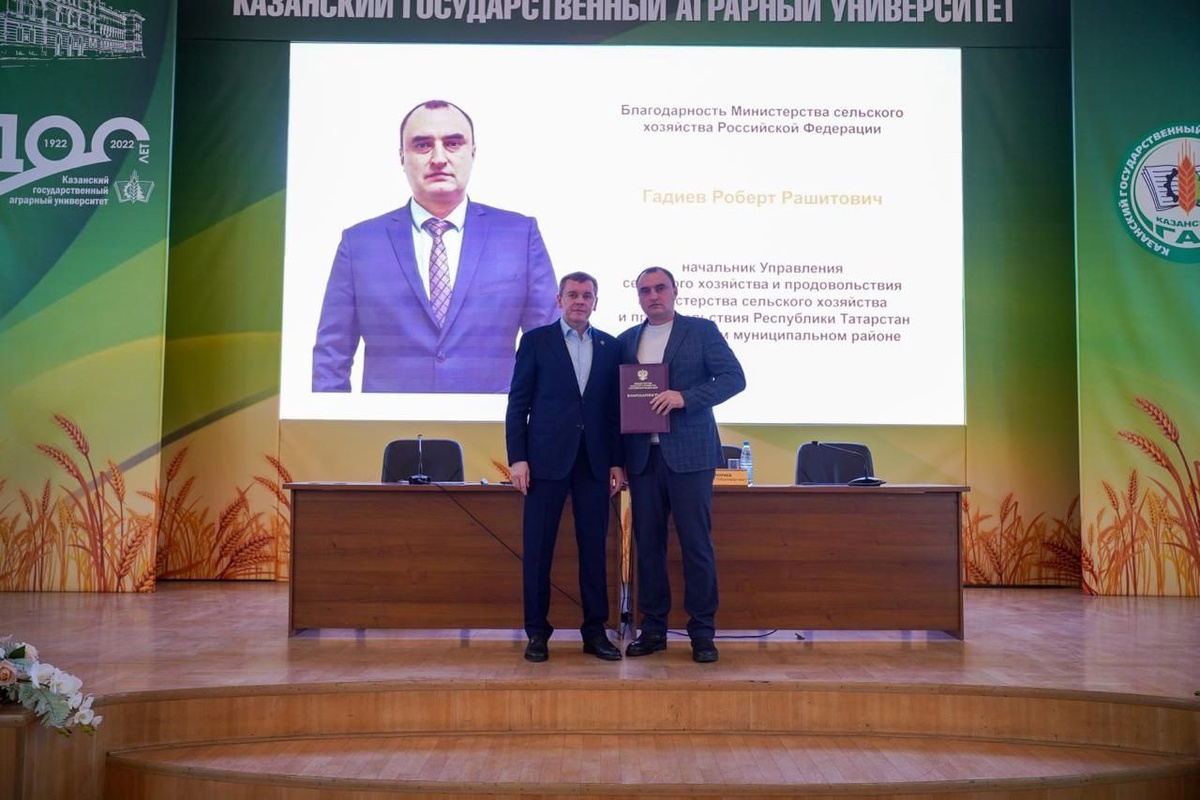 Министр сельского хозяйства Марат Зяббаров поощрил Благодарственным письмом Министерства сельского хозяйства и продовольствия Российской Федераций - Роберта Гадиева - начальника управления с/х и продовольствия Алькеевского района за вклад в развитие агропромышленного комплекса.