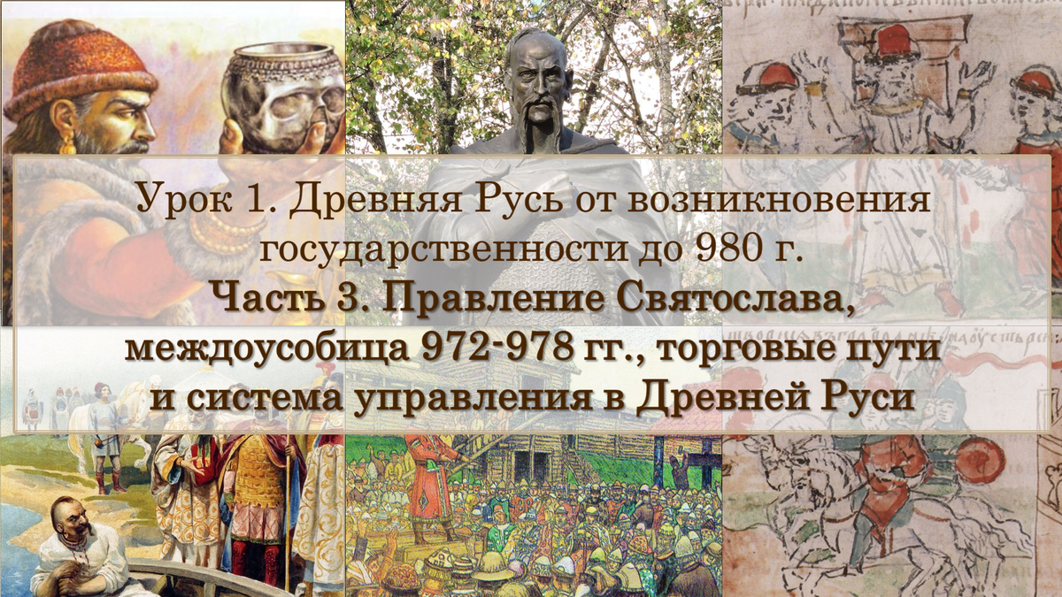 1. правление князя Святослава; 2. междоусобицу после смерти Святослава (972-978 гг.); 3. торговые пути Древней Руси (путь «из варяг в греки», Волжский торговый путь); 4. систему управления в Древней Руси (князь, дружина, вече). Получить дополнительные материалы для подготовки (телеграм) - @Notbadeee