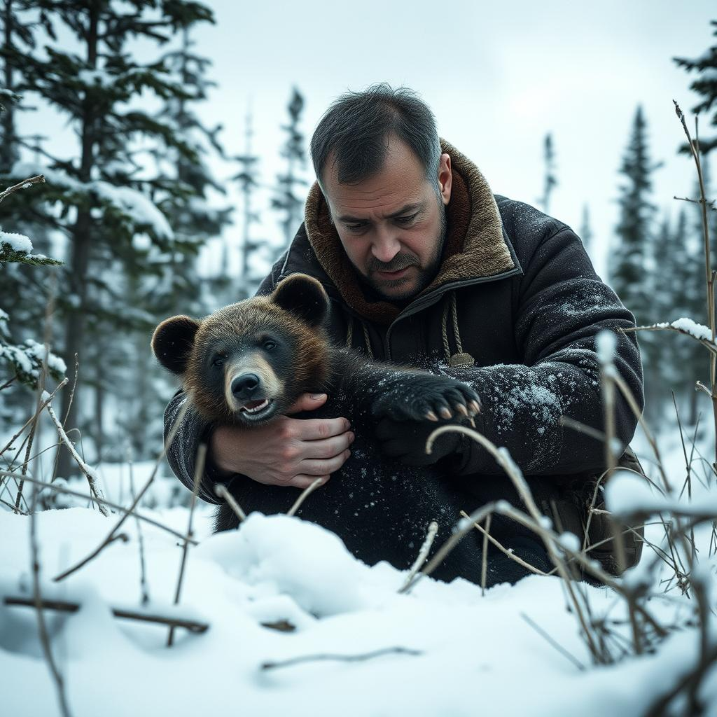 Под корнями вывороченной с корнем огромной ели, в грязной яме, копошился бурый комок. Это был медвежонок. Совсем крошечный, весенний, размером с шапку-ушанку. Он был один. Григорий осмотрелся. Следов медведицы не было видно — старый снег скрывал историю трагедии. Возможно, мать погибла от старость в берлоге, не проснувшись, или попала под завал весеннего паводка где-то ниже по ручью. Медвежонок был истощен до крайности: шкура висела мешком, глаза закисли, он даже не скулил, а лишь тихо сипел, пытаясь согреться в стылой земле.