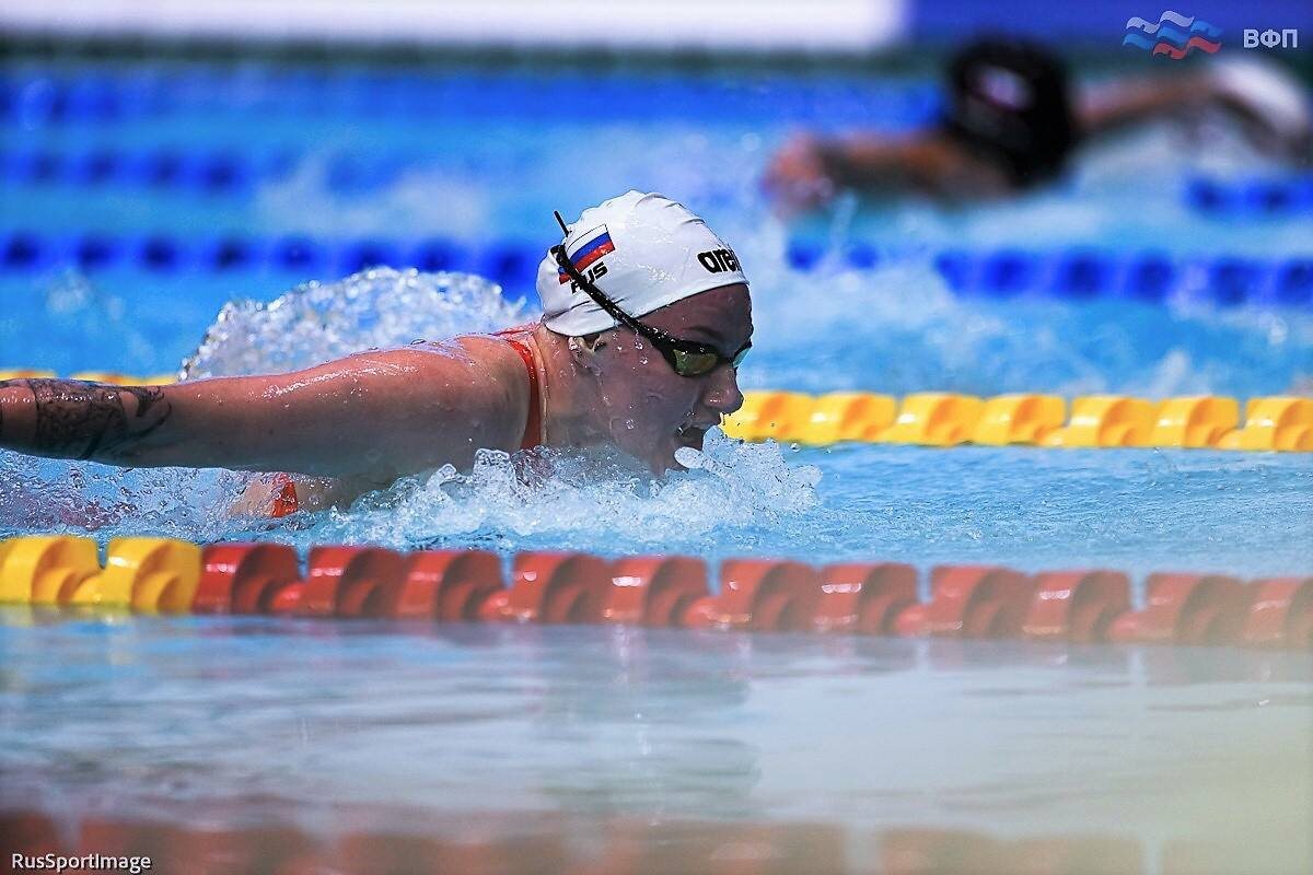 Ирина Звягинцева лидирует на дистанции 400 метров комплексное плавание с результатом 4:35.58