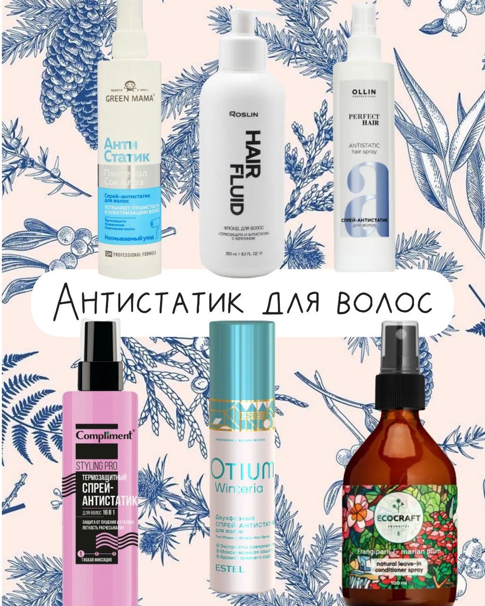 Все антистатики работают по одному принципу: нейтрализуют отрицательный заряд на волосах. Разница между ними в уходе, текстуре и ощущениях после нанесения Группа 1: комплексный уход + антистатик. Подойдут для регулярного использования, если волосы сухие, пористые, уставшие • Ollin • Green Mama • Compliment • Ecocraft (частично) Что внутри • катионные кондиционеры или мягкие силиконы • пантенол, глицерин, растительные экстракты • протеины, иногда гиалуроновая кислота Эффект • снимают статику • уменьшают сухость • со временем делают волосы более послушными Группа 2: мгновенное разглаживание и защита. Выбор для укладок, выхода из дома и эффекта здесь и сейчас • Estel • Roslin Что внутри • силиконы Cyclopentasiloxane, Dimethiconol • кондиционирующие агенты • у Estel есть изододекан, дает сухое, легкое скольжение Эффект • моментально убирают пушистость • придают блеск • часто работают, как термозащита Идеальны под шапку и для финального приглаживания Группа 3: сбалансированные форму