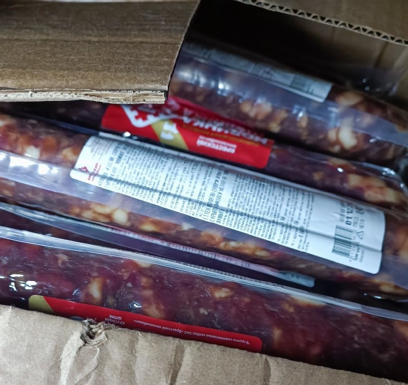 Продукция включала колбасу и сыры, перевозившиеся без необходимых ветеринарных документов и охлаждения. Из-за отсутствия подтверждения происхождения и безопасности товаров партия была возвращена обратно в Беларусь. 📸 Пресс-служба Северо-Западного межрегионального управления Россельхознадзора