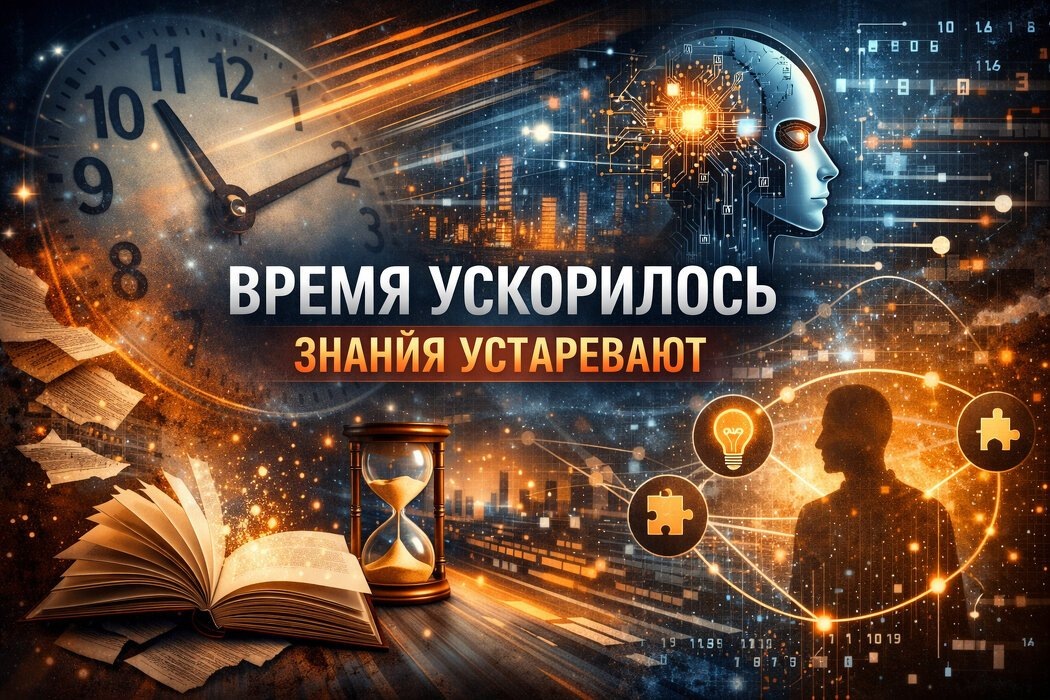 Мы живём в эпоху, которую социолог Хартмут Роза назвал «социальным ускорением» — состоянием, когда скорость изменений превышает способность человека адаптироваться. Это не метафора: исследования показывает, что с 1980-х годов скорость обновления информации, технологий и профессиональных компетенций растёт экспоненциально. Европейский союз в одном из докладов о будущем труда отмечает: средний жизненный цикл профессионального навыка сократился с 30 лет до 5–7 лет, а в IT — до 12–18 месяцев. Знания обесцениваются быстрее, чем мы успеваем их структурировать. И дело не только в технологическом прогрессе. Психологи подчёркивают: при высокой скорости среды меняется сама когнитивная архитектура человека — то, как мы думаем, запоминаем и принимаем решения. Исследования Дэвида Иглмана (David Eagleman) показывают: субъективное ощущение времени зависит от новизны опыта. Когда жизнь наполнена повторяющимися действиями, мозг экономит ресурсы и перестаёт фиксировать события в долговременной памяти —
