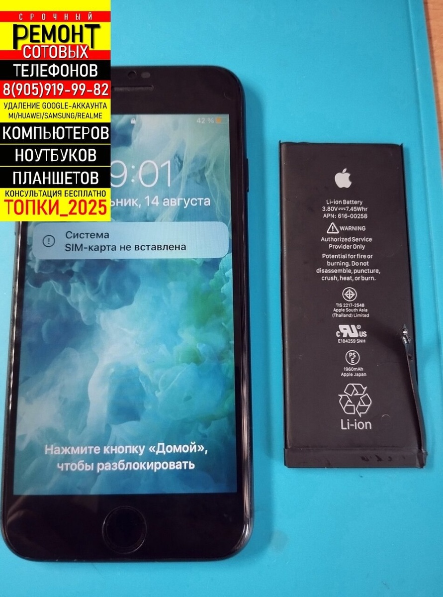 ✅Произведена замена аккумулятора ⚙ Ремонт электроники в Топках ☎ 8-905-919-99-82 ✨ 📱 Телефоны: замена экранов, аккумуляторов, динамиков, устранение последствий попадания влаги, прошивка и настройка программного обеспечения. 🖥 Ноутбуки и ПК: чистим систему охлаждения, меняем клавиши, матрицу, видеокарту, производим апгрейд компонентов, устраняем вирусы и ускоряем работу компьютера. 📺 Планшеты: восстанавливаем сенсоры, ремонтируем порты зарядки, память, камеру и корпус. Почему выбирают нас? - Быстрая бесплатная диагностика