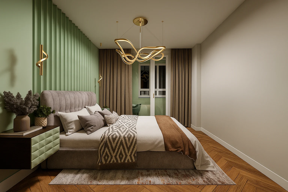 Квартира 79.41кв.м для семьи с ребёнком Проект разработан на основе подробного брифа и сценариев жизни семьи Работа над проектом началась с детального брифа. Важно было учесть не только стилевые предпочтения, но и планы семьи на будущее с возможным рождением второго ребёнка в ближайшие годы. Квартира проектировалась с запасом по функционалу и гибкости. В квартире проживает семейная пара с ребёнком 6 лет. Часть пространства изначально заложена с возможностью трансформации: гостевая комната в перспективе станет второй детской. Кухня объединена с гостиной и стала центральной зоной жизни. Здесь сосредоточены сценарии готовки, семейного общения и приёма гостей. Планировка выстроена так, чтобы сохранить ощущение воздуха и не перегружать пространство мебелью. Лоджия утеплена и функционально включена в квартиру здесь организовано полноценное рабочее место. Подвесная столешница, стационарный компьютер и естественный свет позволяют использовать зону ежедневно, не нарушая общий баланс интерьера.