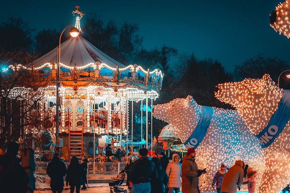 - Цветной бульвар: Здесь развернется шикарный Ледовый городок под тематикой «Семейные ценности» с лабиринтами, ледяными копиями и горками. Также работает самый крупный в городе «Улетный каток» с искусственным покрытием площадью 4000 кв.м и колесо обозрения, с которого открываются чудесные виды на город.