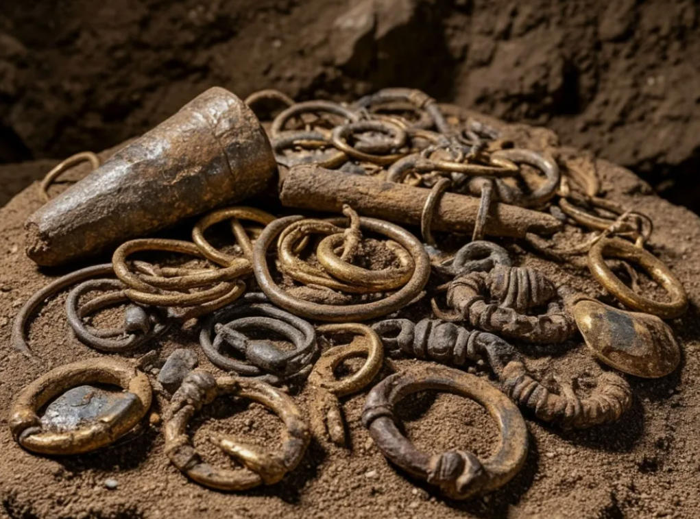 Такое обращение с ценными и статусными предметами не имеет смысла, если цель состояла в сохранении богатства. Это не тайник купца и не запас на случай войны, а сознательное уничтожение ценности, которое больше похоже на тщательно продуманный ритуал.