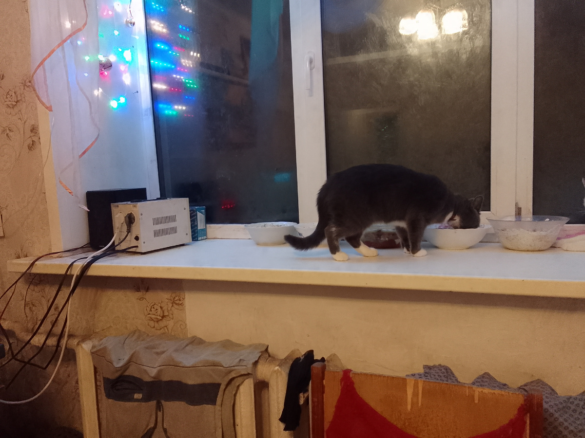 Мы планируем пасматреть тиливизор. Нет именно его, а не в акно, что наш кошачий тиливизор. И пасматреть на свет гирлянд. Да Бусинка и Кныш, тока посмейте чавото перегрызть. Я вам уши перегрызу. Исчо планируем футбольный матч йолочным шариком. И многа мяуса. И паслушать джасс.