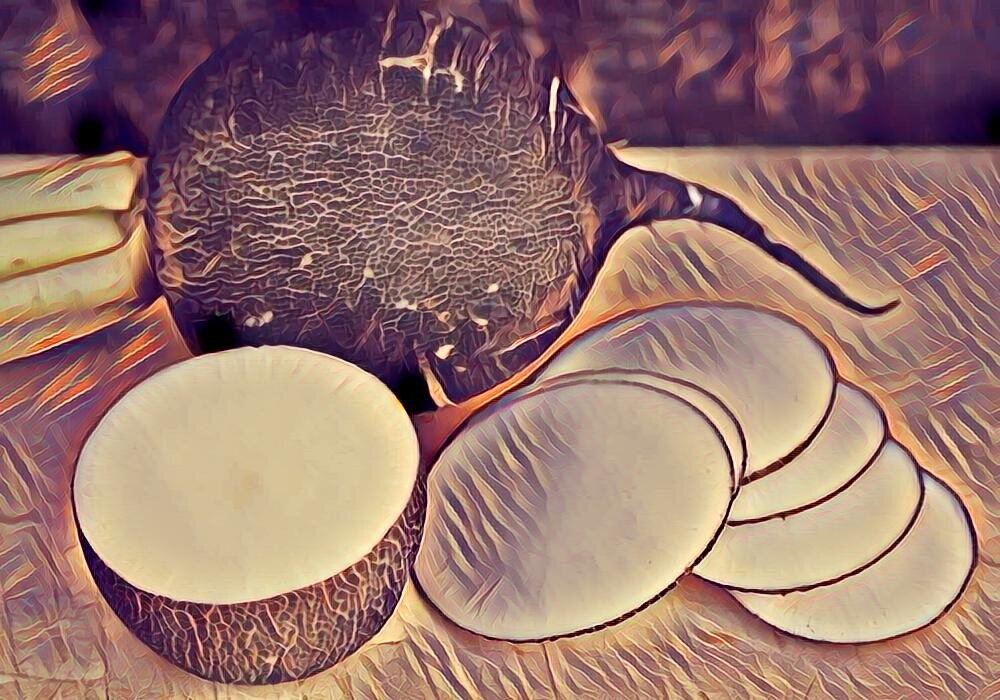 Для мазуни брали самую крепкую редьку с резким вкусом. Корнеплоды нарезали тонкими ломтиками. Каждый ломтик нанизывали на нитку за хвостик. Вывяливали на солнце или в остывающей печи после выпечки хлеба. Ломтики развешивали так, чтобы не касались друг друга. Ждали полного высыхания без единого сырого места. Высушенную редьку протирали насухо, истолчали в ступе и просеивали сквозь мелкое сито.