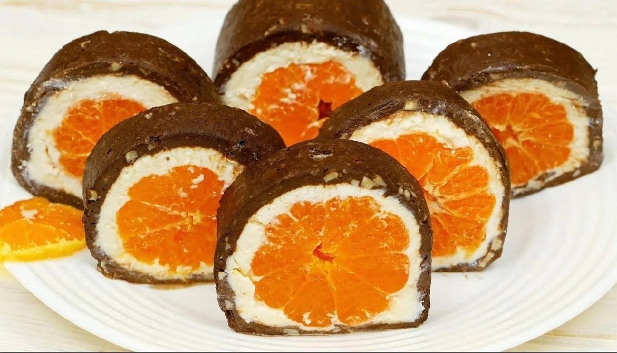 🎄 ПП-РУЛЕТ "ШОКОЛАДНЫЙ МАНДАРИН" 🍊 Для этого рулета нам не нужны ни мука, ни яйца! Понадобится печенье, у меня самое простое можно даже типа печенье «Мария» 🍪 ИНГРЕДИЕНТЫ: Для теста: Печенье, например «Мария» – 350 г Какао-порошок – 2 ст.л. Бананы – 2 шт. 🍌 Творог мягкий (5%) – 450 г Мёд – 2-3 ст.л. 🍯 по вкусу Мандарины – 3-4 шт. 🍊 Для украшения: Шоколад тёмный (70%) – 50 г 🍫 Сахарная пудра (по желанию) Ягоды свежие или замороженные 🍓 СПОСОБ ПРИГОТОВЛЕНИЯ: ✅ Шаг 1: Печенье необходимо будет измельчить в мелкую крошку. Я сделала это при помощи блендера, можно измельчить скалкой. ✅ Шаг 2: Бананы измельчить в блендере до состояния пюре. Можно банан заменить любым фруктовым пюре. ✅ Шаг 3: Добавьте банановое пюре в печенье, всыпьте какао и перемешайте до однородного состояния. ✅ Шаг 4: Для крема возьмём мягкий 5%-й творог. Добавьте в творог по желанию мёд и при помощи погружного блендера доведите до однородного состояния. ✅ Шаг 5: На лист пергаментной бумаги выложите полученную масс