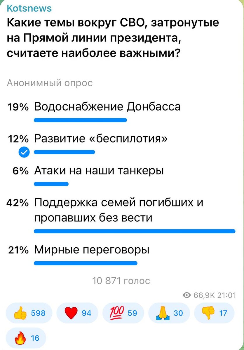 ⚡️⚡️⚡️ 42 процента подписчиков считают самой важной затронутой темой поддержку семей погибших и пропавших без вести. К счастью, руководство страны разделяет их мнение.
