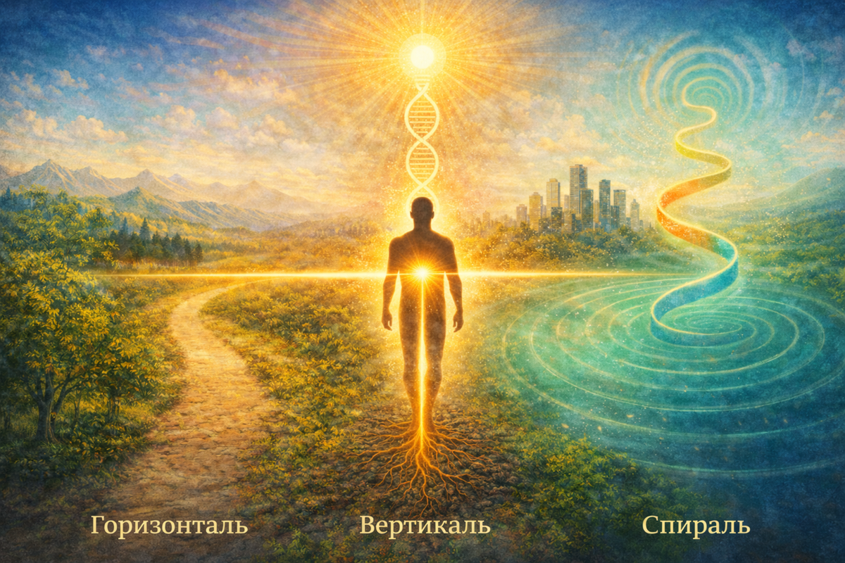 Горизонталь, вертикаль и спираль – это не способ описывать личность. Это карта ориентации. Она нужна не для того, чтобы понять, «какой я», а чтобы различить, в какой плоскости я сейчас действую, есть ли у меня внутренняя ось и возникает ли между ними спираль – или движение снова замыкается.