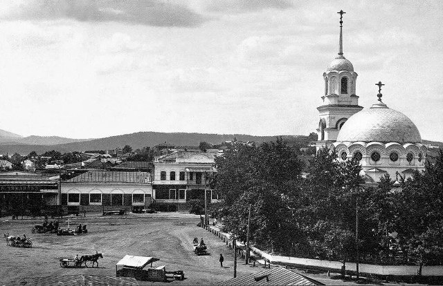 Петропавловская церковь, главный храм города Миасса. Миасская волость, Челябинский уезд, Оренбургская губерния, 1900 год. Неизвестный автор. Государственный исторический музей Южного Урала ----- Сообщает: Российская Империя в фотографиях 🫛Миасс Православный