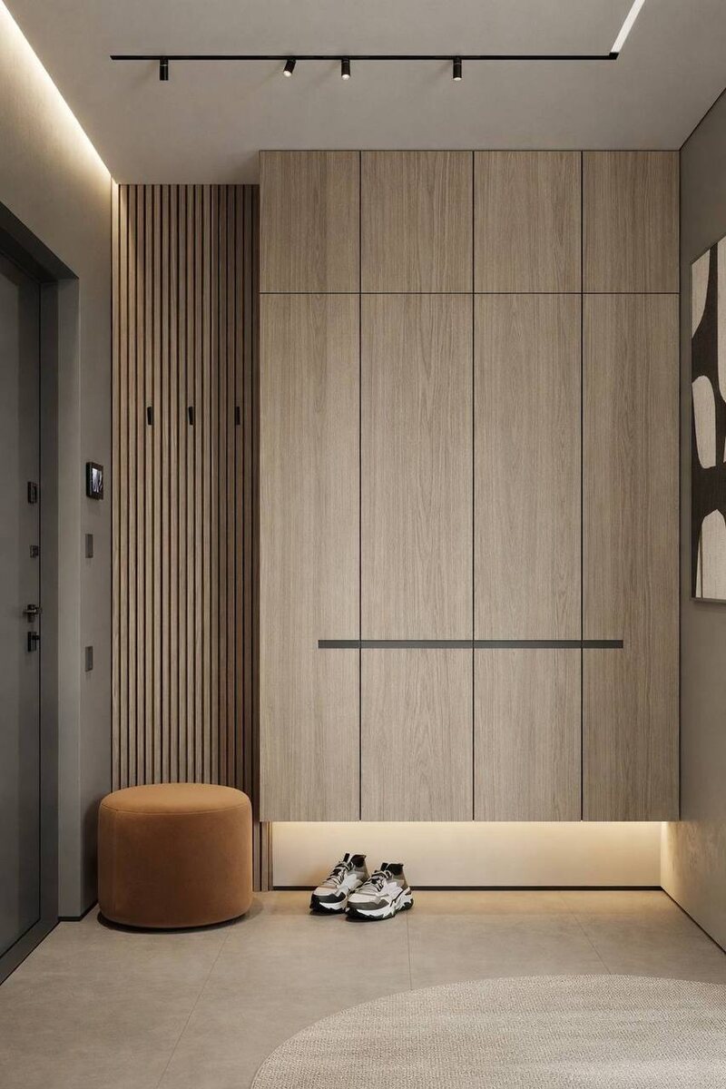 В этой зоне критичны стабильность основы, направление волокон, качество кромки и подбор шпона с учётом условий эксплуатации. Прихожая работает в режиме постоянной нагрузки, и любые технологические ошибки становятся сразу заметны. Шпонированные фасады позволяют применять фрезеровки, радиусные элементы и рельефные плоскости без утяжеления конструкции. Это расширяет проектные возможности и даёт контроль над пластикой фасадов и конструктивной точностью изделия. 😍