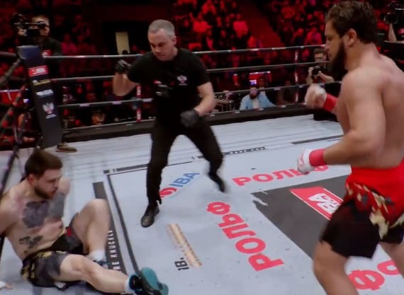 Хайбула побеждает Марселя Ханова техническим нокаутом в первом раунде турнира IBA Bare Knuckle 3.
