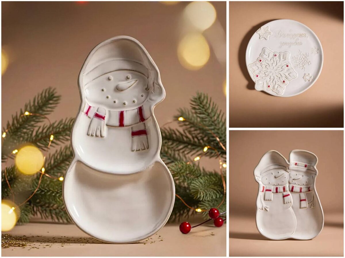 ✨☃️✨ Новогоднее сервировочное блюдо в форме снеговика или со снежинкой. ✨