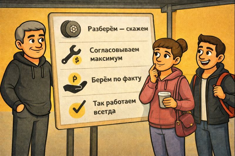 Клиент пишет отзыв: “Не буду портить статистику сервису, но написать всё-таки хочется. Интересно почитать/посмотреть блог Вячеслава на Дзене или группу ВК, но сам до настоящего времени так и не обратился в данный сервис, хотя иногда из-за блога всё-таки хочется. Подкупает. Суть: давно (в году 21-22), еще эксплуатируя свой старенький Форд с барабанными тормозами, приехал в Гараж # 1 для диагностирования проблемы сильного скрипа задних тормозов. Обратившись к администратору по указанному вопросу, получил ответ: «автомобиль старый, в любом случае менять задние барабаны, диагностировать нечего» и сообщил цену порядка 20-25 тысяч. Сейчас точную сумму не назову, но в любом случае на тот момент она была существа. По итогу, обратившись в другой сервис, где разобрали 1 барабан, оказалось, что проблема была в отскочившей пружинке стоимостью до 1000₽, после замены, которой и обслуживания тормозов, Форд успешно эксплуатировался до момента продажи. Вот такой неприятный момент портит впечатление о с