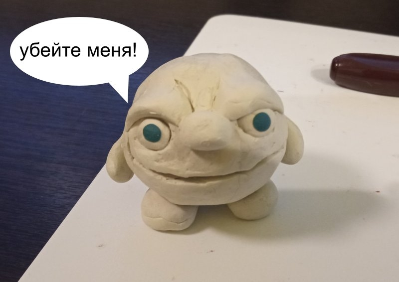 Кринжовых историй не хотите ли? Ведь придумывание Колобка дало много поводов покекать в процессе его появления. Короткая история про то, как я лепил кринж в тФорческом поиске. :) Ну да Колобок стал первым персонажем, который лепился для внедрения в игру. Процесс его кринжрождения вы можете наблюдать на нескольких картинках. Совсем уже кринжовые даже не фоткал. Хотя наверное стоило. :)) Да придумывалось не быстро, с перерывами на другие процессы разработки игры. Посматривал картинки всяких колобково-похожих персонажей. Был эксперимент с заменой морды-лица из чисто пластилина на вырезанные из бумаги элементы. Но всё было не то. Понравилась одна картинка из инета, где колобок был похож на какого-то гопника. Даже пытался лепить похожее. Но вышло так же кринжово, как и остальные до этого. Однако, понял что такую гопоту запускать в игру позязя не надо. :) Так что перестал пытаться сделать что-то достойное из этой идеи. Ну так через пару недель всё же начало получаться что-то такое, что уже б