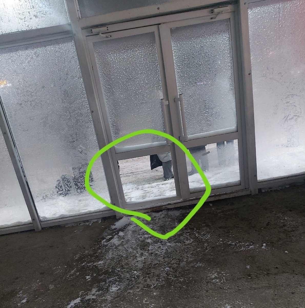 У остановки напротив Великана на двери отсутствует стекло