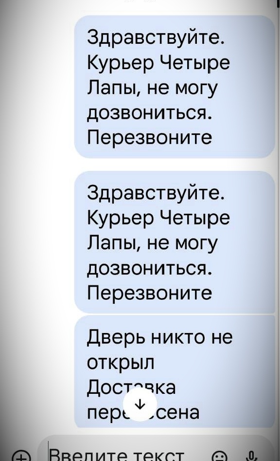 Не дозвонившись и не постучавшись до клиента, отправляю ему очередное сообщение с предупреждением о переносе доставки: