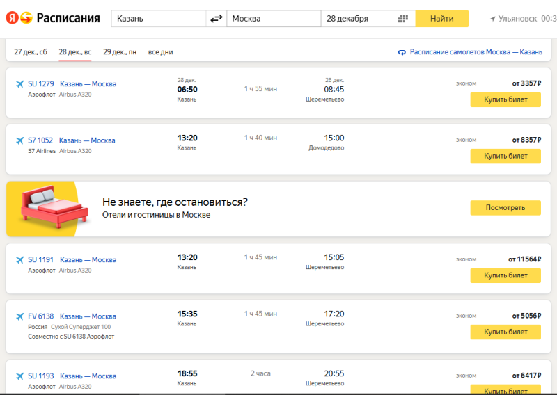 Теперь о нынешней ситуации с ценообразованием. Сейчас задача перевозчика – загрузить файл с тарифами в ГРС. У Победы они распределены по зонам. Например, из Москвы в Чебоксары или из Ульяновска в Питер продажа осуществляется по одним и тем же тарифам. Далее в игру вступает система Revenue, которая и управляет разбронировкой. К началу продаж она руководствуется статистикой. Например, если рейс в четверг, то берёт статистику по прошлым трём четвергам, если рейс ранее не выполнялся, то подсмотрит тарифы конкурентов. Если праздники, каникулы и прочие моменты – берётся статистика по праздничным и каникулярным дням за прошлые периоды. Естественно, с учётом конкурентов. Например, статистика вывела, что билет должен стоить 5 тысяч, а у конкурента стоит 9, а у РЖД – 6, то система выкинет места по 7.