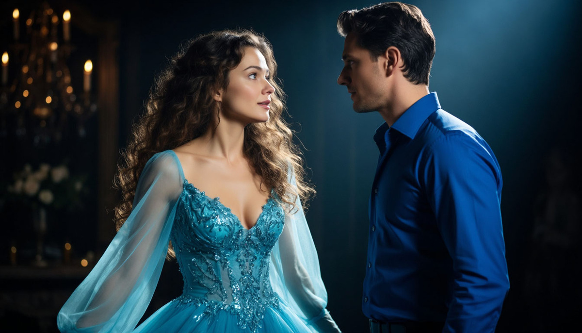 Ксюша стояла на пороге, как фея из волшебной сказки. Её волнистые волосы ниспадали почти до талии. Платье из лёгкого бирюзового шифона с блестящим основанием переливалось в свете зажжённых гирлянд. Туфли на высоком каблуке были такого же цвета и блестящие, как у волшебницы. А томный взгляд говорил всё сам за себя.